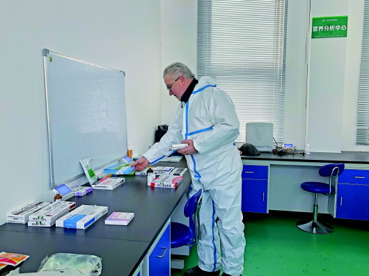 戴维德·奥斯本在实验室筛选药品。均为本报记者张文静摄