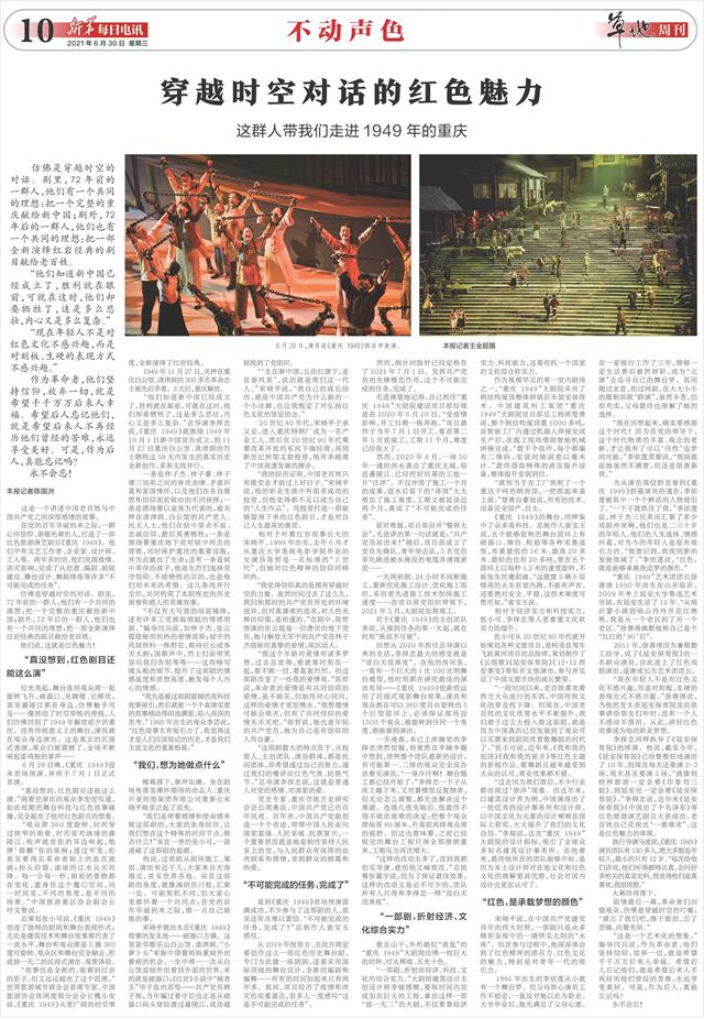1949》。他们中有文艺工作者、企业家、设计师、工人等。两年多时间,他们克服疫情、洪灾影响,完成了从创意、编剧、剧院建设、舞台设计、舞蹈排练等许多“不可能完成的任务”。