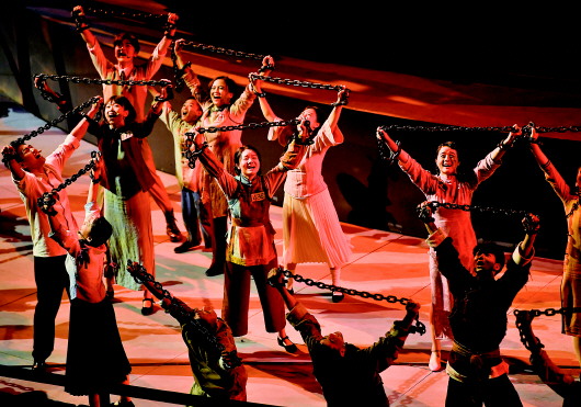 剧情最后一幕,革命者们回望观众,仿佛是穿越时空的叮嘱:“请忘了我们吧,擦干眼泪,忘了悲痛,向着光明。”