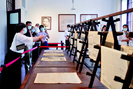 6月29日,参观者在北大红楼内参观。修缮后的北大红楼旧址当日重新开放。“光辉伟业