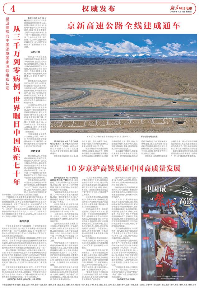 | ( 2021-07-01 ) 稿件来源:新华每日电讯 权威发布 |