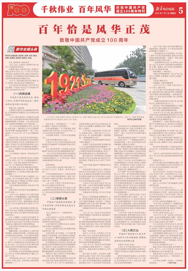 今天,中国共产党已经写就百年的史诗,并把成立一百周年作为“一个新的征程的起点”,奔向又一个百年奋斗目标——