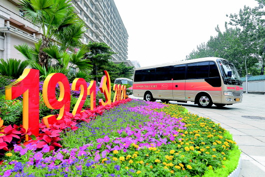 6月29日,庆祝中国共产党成立100周年“七一勋章”颁授仪式在北京人民大会堂金色大厅隆重举行。这是“七一勋章”获得者集体乘坐礼宾车从住地出发,前往人民大会堂。 新华社记者李贺摄