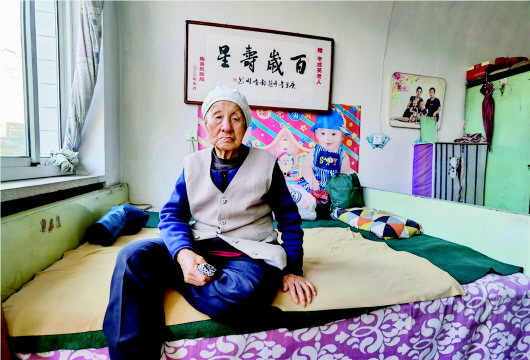 101岁的李成英说,因为脚小走不稳路,在地主家打长工主要是靠丈夫,挣不了太多工钱。