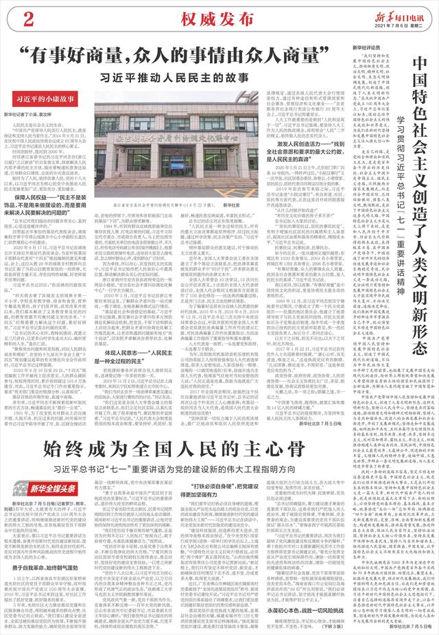 习近平总书记的殷殷期许,为坚持和发展人民民主注入澎湃动力。新华社北京7月5日电