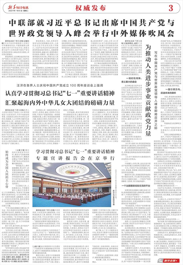 | ( 2021-07-06 ) 稿件来源:新华每日电讯 权威发布 |