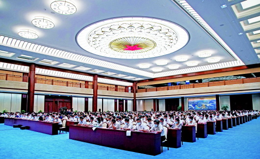 报告会由中央宣传部分管日常工作的副部长王晓晖主持。党史学习教育中央宣讲团成员,党史学习教育领导小组办公室成员,在京党政机关干部、中央企业有关负责人、北京市干部群众代表、理论工作者代表等,共800余人参加报告会。