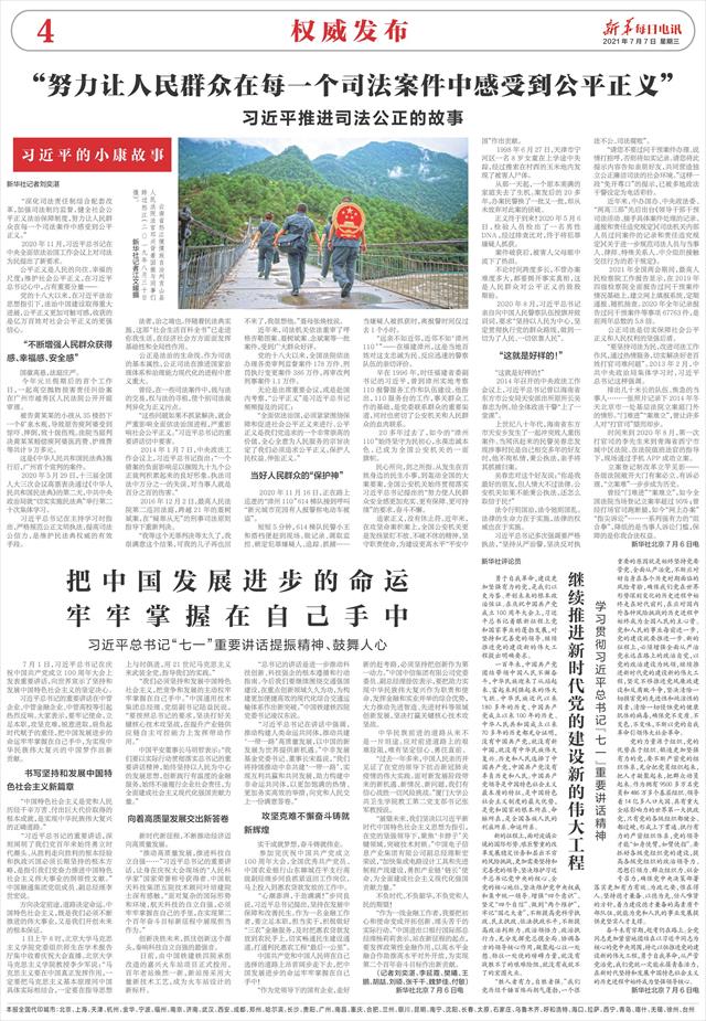 | ( 2021-07-07 ) 稿件来源:新华每日电讯 权威发布 |
