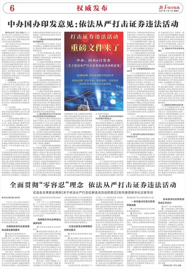 证监会主席易会满就《关于依法从严打击证券违法活动的意见》发布接受新华社记者专访 |