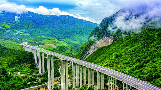 车辆行驶在正习高速道角大桥上。7月1日,贵州省遵义市正(安)习(水)高速公路全线通车。正习高速公路横穿乌蒙山区域,途经正安、桐梓、习水3县,全长约130公里。 新华社记者陶亮摄