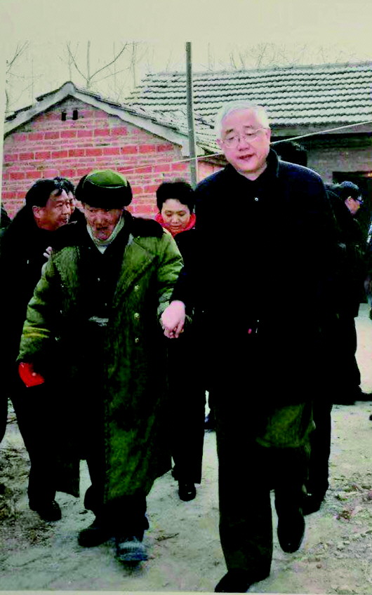 时任安徽省政协副主席的李宏塔(前右)在安徽阜阳市颍东区插花镇慰问困难群众(2011年1月14日摄)。 新华社发 |
