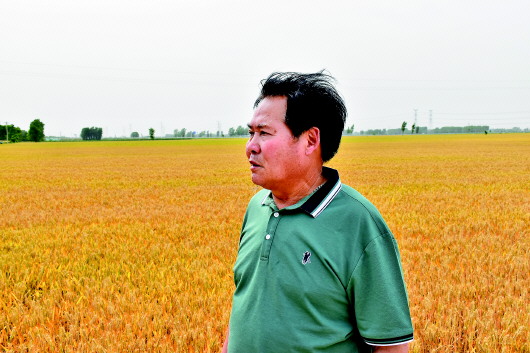 赵长印在黄河故道南大堤徘徊,放眼望去都是金黄麦田。本报记者韩朝阳摄 |