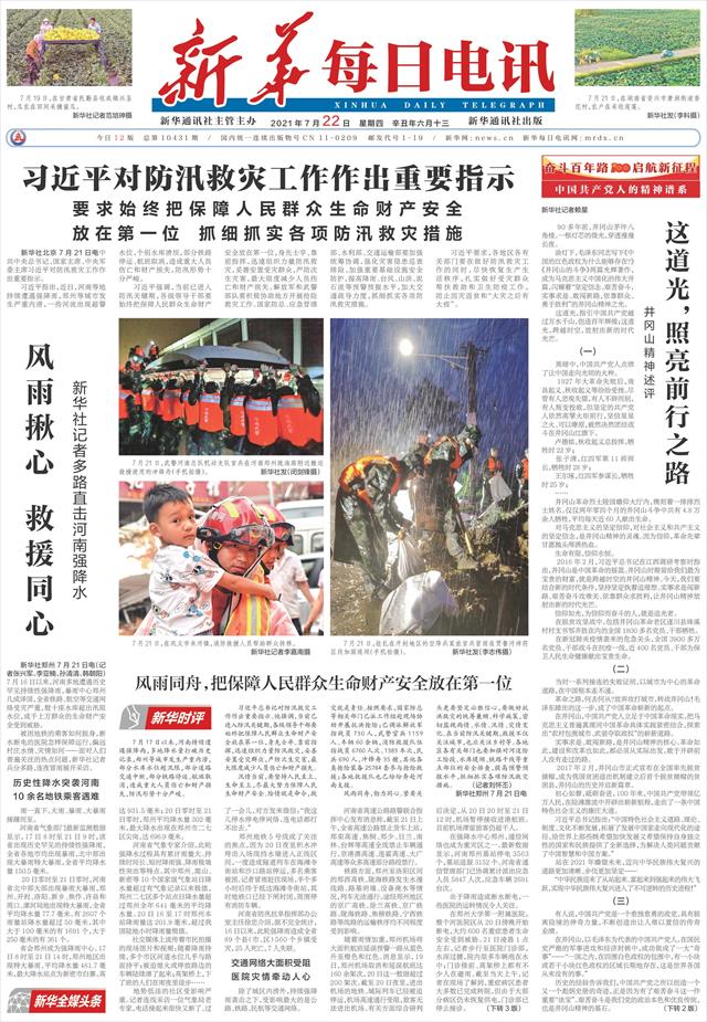 7月17日以来,河南持续遭遇强降雨,多地降水量打破历史记录,郑州等城市发生严重内涝,部分水库水位超汛限,部分道路交通中断,部分铁路停运、航班取消,造成重大人员伤亡和财产损失,防汛形势十分严峻。