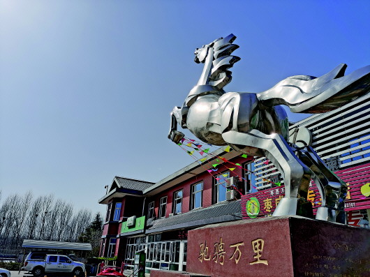 通向倒马关的高速曲阳服务区中奔马像。 本报记者王文华摄 |