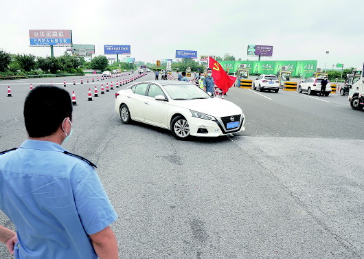 7月25日,在宁洛高速公路曹庄收费站,一辆汽车被劝返。新华社记者季春鹏摄