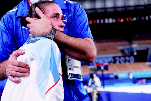 在女子跳马项目中止步资格赛,丘索维金娜娇小的身躯埋在教练的臂弯里,抽泣的样子更像个需要疼爱的孩子。46岁的她含泪结束了自己的第八届奥运会征程。当“丘妈”退场时,东京有明体操馆里所有的运动员、裁判、媒体人和志愿者都起立为她鼓掌,向这位用一生诠释奥运精神的伟大运动员致敬。