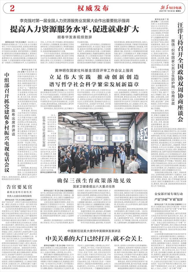 | ( 2021-07-30 ) 稿件来源:新华每日电讯 权威发布 |