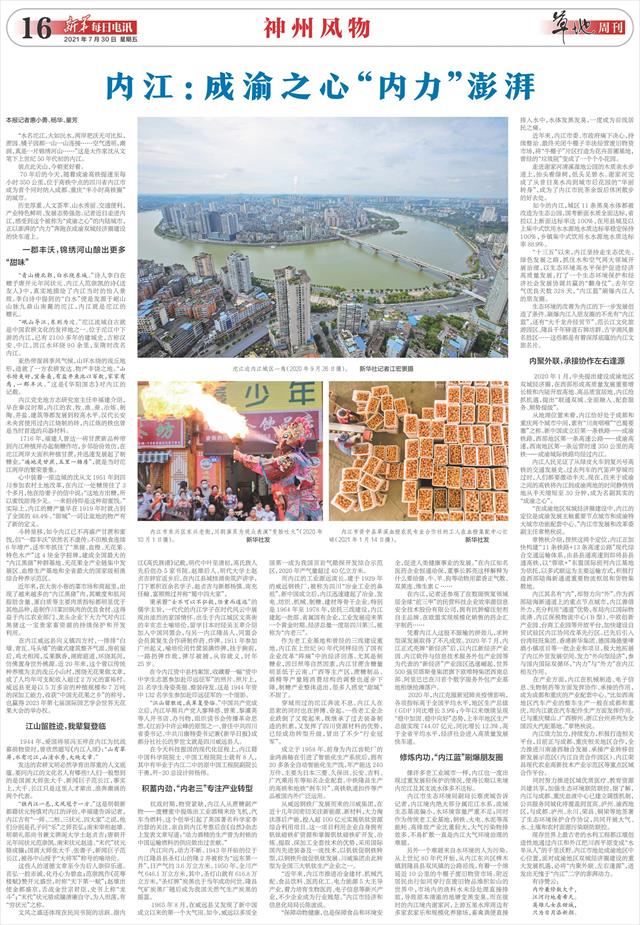 历史厚重、人文荟萃、山水秀丽、交通便利,产业特色鲜明、发展态势强劲。记者近日走进内江,感受到这个被称为“成渝之心”的内陆城市,正以澎湃的“内力”奔跑在成渝双城经济圈建设的快车道上。
