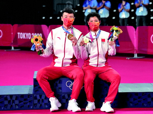 7月30日,王懿律/黄东萍(右)在颁奖仪式上。 新华社记者李一博摄 |