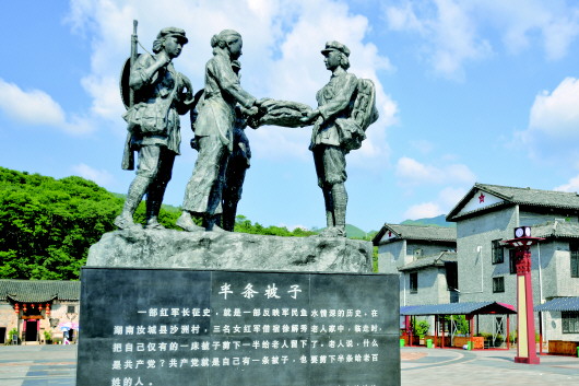 这是湖南省汝城县沙洲村广场上的“半条被子”雕塑。新华社记者陈泽国摄