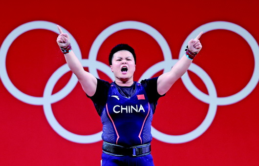 8月2日,汪周雨在举重项目女子87公斤级比赛中。 新华社记者杨磊摄