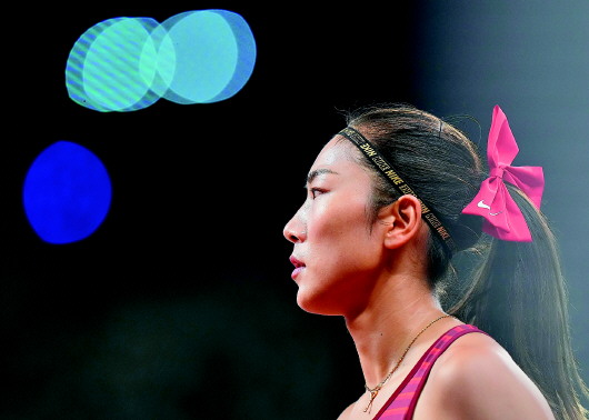 比赛开始前,扎着马尾辫的王春雨,依然戴着她觉得能带来好运的红色蝴蝶结,很快摆好准备姿势,投入到“战斗状态”。