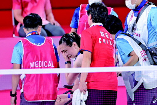 在7月29日进行的东京奥运会羽毛球女单八分之一决赛中,美国选手张蓓雯先胜一局后,第二局却突然受伤倒地而弃赛,被轮椅推出场地。中国选手何冰娇不战而胜。但在混采区里,何冰娇却向记者表示以这种方式进下一轮很意外,随后流下了眼泪。何冰娇说,她看不得别人受伤,希望对方伤势不要特别严重,“如果可以的话,我想好好跟她拼完这场球”。