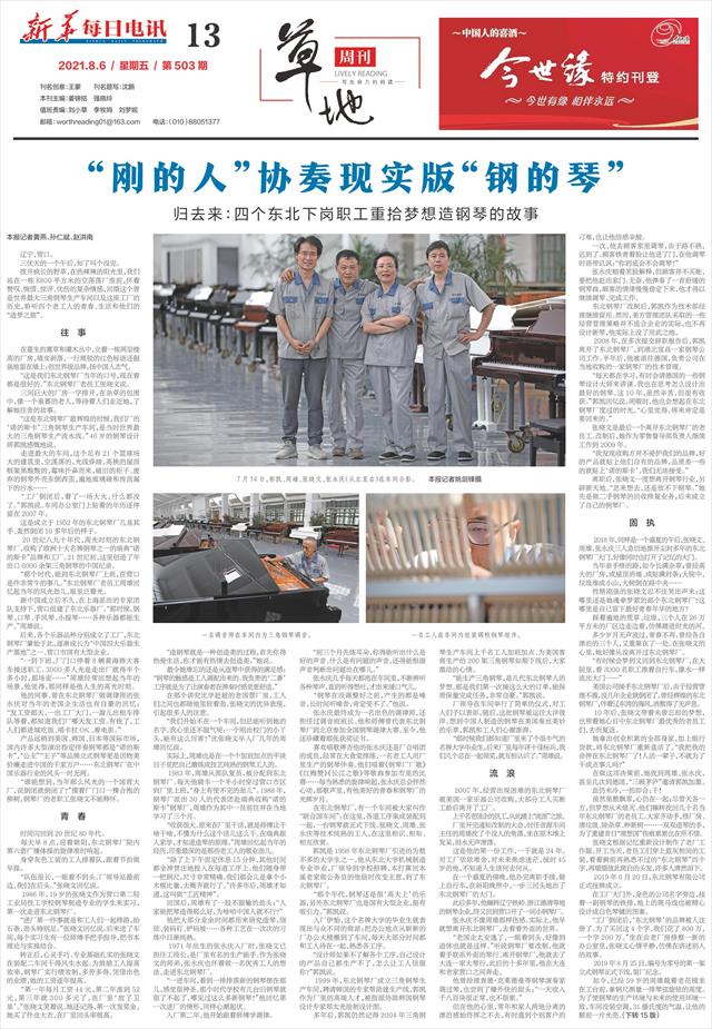 “我们也很佩服她,最后是一个女职工把东北钢琴重建了,她很有决断力,很‘刚’,有时候开玩笑,说我们造的不是钢琴,而是‘刚琴’。”张永庆说。