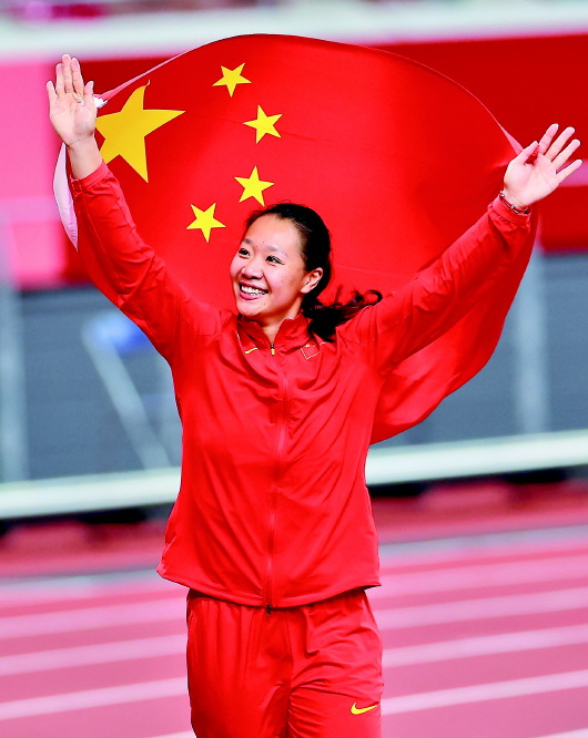 8月6日,刘诗颖庆祝胜利。当日,在田径女子标枪决赛中,刘诗颖为中国代表团夺得东京奥运会田径比赛的第二枚金牌。新华社记者兰红光摄 |