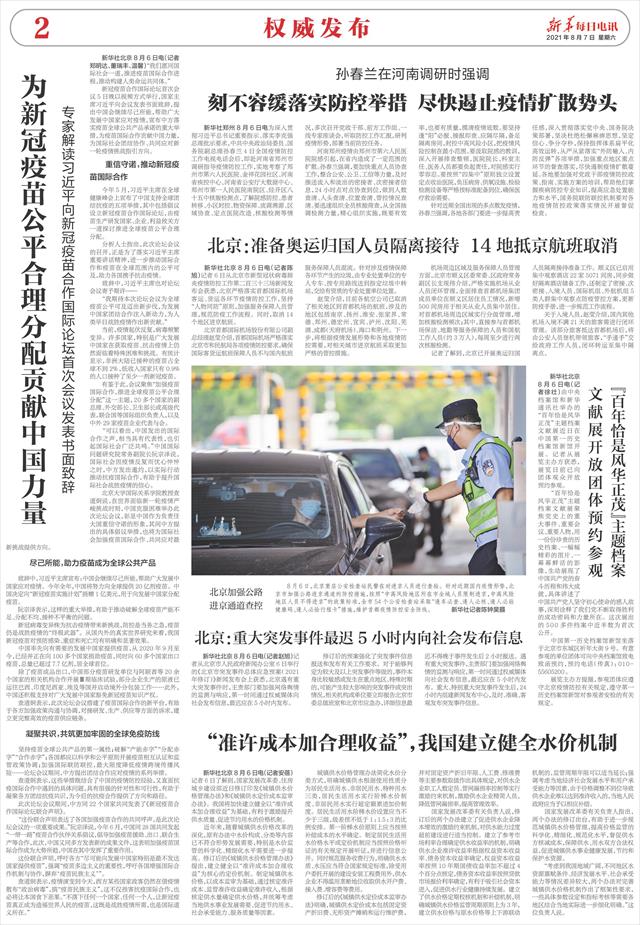 | ( 2021-08-07 ) 稿件来源:新华每日电讯 权威发布 |