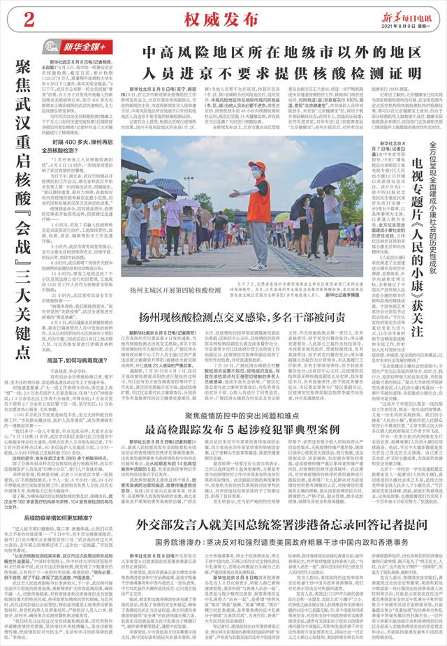 | ( 2021-08-09 ) 稿件来源:新华每日电讯 权威发布 |
