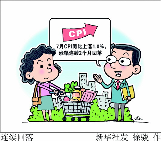 7月份,CPI同比涨幅在上个月回落0.2个百分点的基础上,继续回落0.1个百分点。
