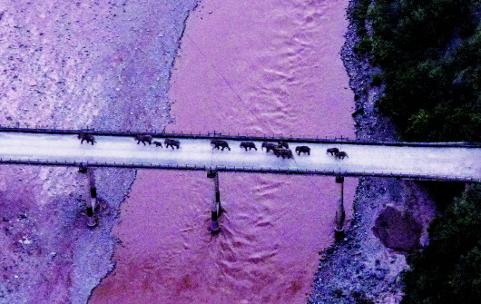 他介绍,为帮助象群顺利渡过元江干流,工作人员步行走完元江县境内76公里的元江河道,结合象群位置进行分析研究,最终选择让象群从老213国道元江老桥渡江。在助迁过程中,象群无数次偏移预计线路,但经各方共同努力,奋战13天12夜后,象群从桥面上顺利渡过元江。