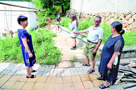 邵武市通泰街道月山关社区居民邱义祥(右二)等在一小区的空地前商讨环境整治方案(8月4日摄)。近年来,福建省邵武市通泰街道以党组织为核心,将邻里自治共治工作触角延伸到小区楼栋和千家万户,共同打造共建共治共享的和谐幸福家园。 新华社记者林善传摄