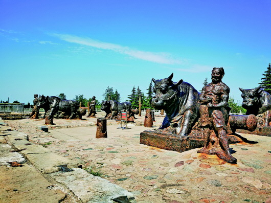 《读史方舆纪要》将蒲津渡列为山西重险之地。历史上,黄河常成为不同势力的天险,浦津则是兵家必争之地。张说称之为“隔秦称塞,临晋名关,关西之要冲卫,河东之辐辏”。先秦以降的两三千年间,这里发生过大大小小数十次战争。战国时,秦昭襄王第一个在蒲津渡上架设浮桥;汉武帝则在河西修筑关隘。到了唐朝,蒲津渡处于长安至太原驿道上。其时国力昌盛,远迈前代,于是,开元十二年(724年),一个超级工程动工了——工程耗费了全国铁年产量的五分之四,铸造成8尊各重8万斤的铁牛,以及牵铁牛的铁人、固定船只的铁柱和铁山、绞盘等物。8尊铁牛分置两岸,将波涛中的浮桥牢牢牵挽。行人迈步浮桥,如履平地。到了宋朝,一场大洪水将铁牛冲进河里,于是发生了曾入选小学课本的怀丙捞铁牛的故事。