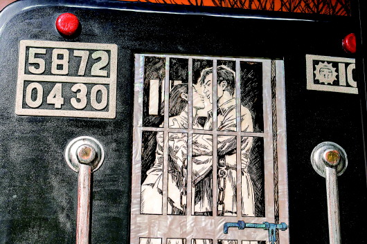 ![]() 表现蔡博真、伍仲文在囚车上举行婚礼的艺术展板。 本报记者许东远摄 |