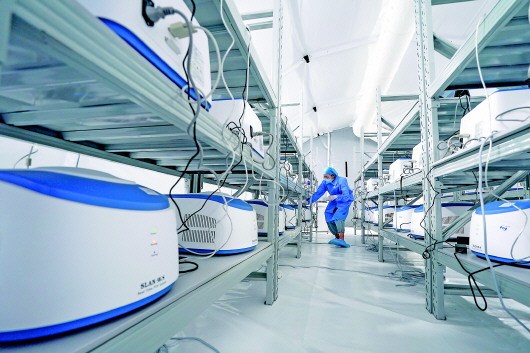 江真君告诉记者,扬州“猎鹰号”气膜实验室的工作人员来自全国各地,平均年龄不到28岁。每天,他们身着密不透风的防护服,在封闭的实验室里工作十几个小时。