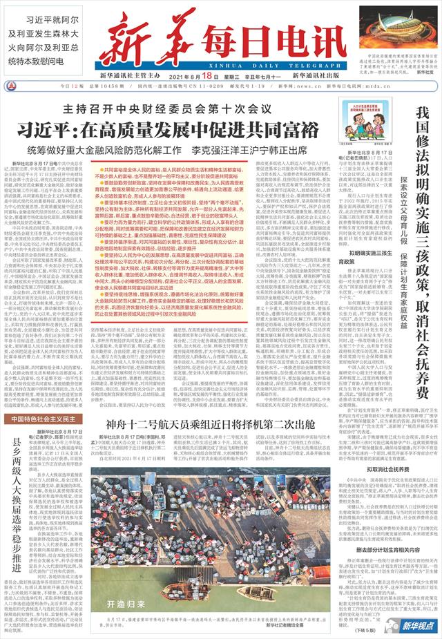 | ( 2021-08-18 ) 稿件来源:新华每日电讯 要 闻 |