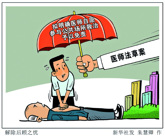 近年来,医师在公共场所遇紧急情况予以施救的情况时有发生。为鼓励医师积极参与公共场所的救治活动,草案三审稿增加规定:医师在公共场所因自愿实施急救造成受助人损害的,不承担民事责任。