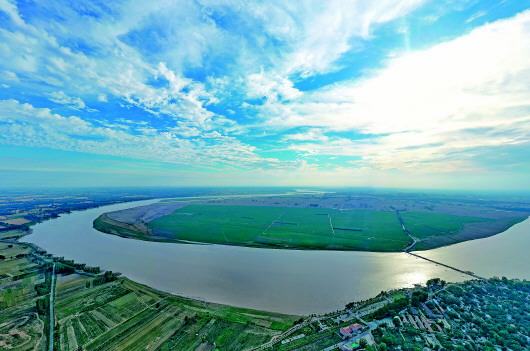 这是6月18日在河南省兰考县黄河湾风景区拍摄的黄河(无人机照片)。新华社发(李金雷摄) |