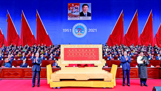 习近平在贺匾上题词“建设美丽幸福西藏 共圆伟大复兴梦想”