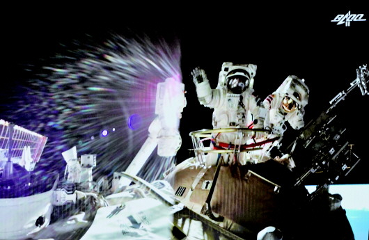 中国载人航天工程办公室表示,这次出舱活动,天地间大力协同、舱内外密切配合,先后完成了舱外扩展泵组安装、全景相机D抬升等任务,全过程顺利圆满,进一步检验了我国新一代舱外航天服的功能性能,检验了航天员与机械臂协同工作的能力及出舱活动相关支持设备的可靠性与安全性。