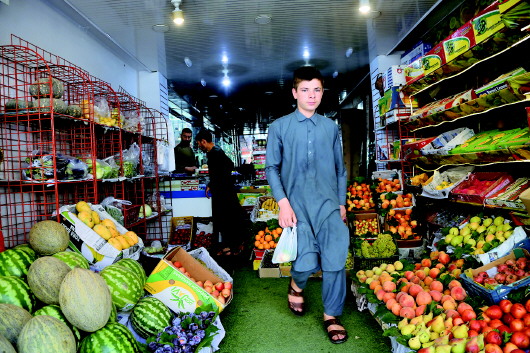 8月21日,阿富汗喀布尔居民在一家商店购买水果。 新华社发