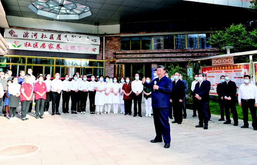 傍晚时分,习近平来到承德市高新区滨河社区居家养老服务中心。近年来,该社区通过政府购买服务、企业运营、社会参与的方式,为社区提供居家养老服务,探索解决老年人健康医疗、生活照料等问题。习近平察看信息化平台、适老化改造等项目,详细询问服务范围、救助方式等事项。习近平指出,满足老年人多方面需求,让老年人能有一个幸福美满的晚年,是各级党委和政府的重要责任。要推动养老事业和养老产业协同发展,发展普惠型养老服务,完善社区居家养老服务网络,构建居家社区机构相协调、医养康养相结合的养老服务体系。要把老有所为同老有所养结合起来,研究完善政策措施,鼓励老年人继续发光发热,充分发挥年纪较轻的老年人作用,推动志愿者在社区治理中有更多作为。要发挥社区作为联防联控、群防群控的第一道防线作用,始终绷紧疫情防控这根弦,全面做好“外防输入、内防反弹”各项工作,坚决克服麻痹思想、厌战情绪、侥幸心理、松懈心态,毫不放松抓好疫情防控。