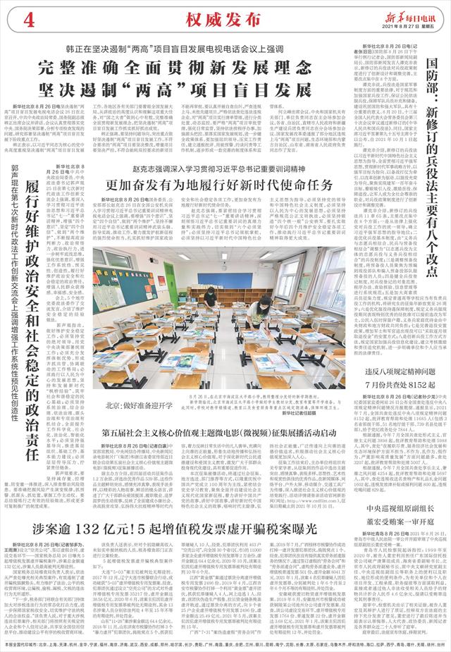 | ( 2021-08-27 ) 稿件来源:新华每日电讯 权威发布 |
