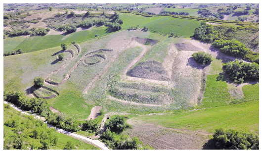 在菜籽沟不远处的陡坡上,有三幅巨大的“大地浮雕”,占地约180亩,张着百米长的大嘴像是在对宇宙呼喊。人们只能从山顶或者通过无人机观其全貌。这是深耕大地艺术的王刚,依托山势创作的作品《大地生长》系列。