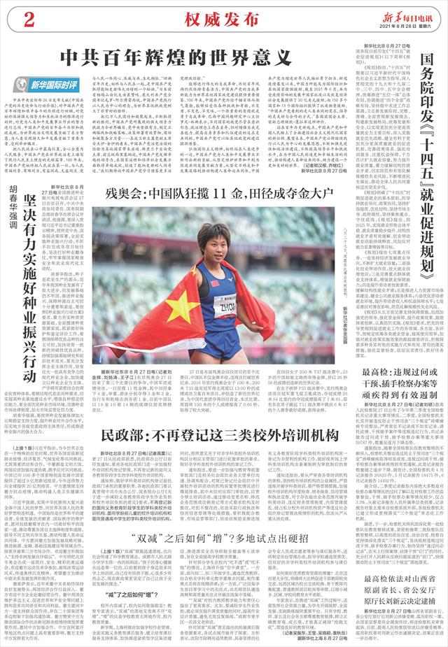 | ( 2021-08-28 ) 稿件来源:新华每日电讯 权威发布 |