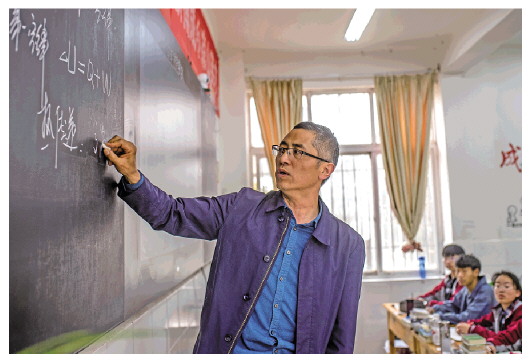 下图为王霖伯在宁蒗二中高103教室上课(2021年4月23日摄)。新华社发 |