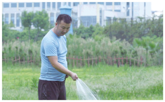 杨玉健在农业公园中浇花。 受访者供图