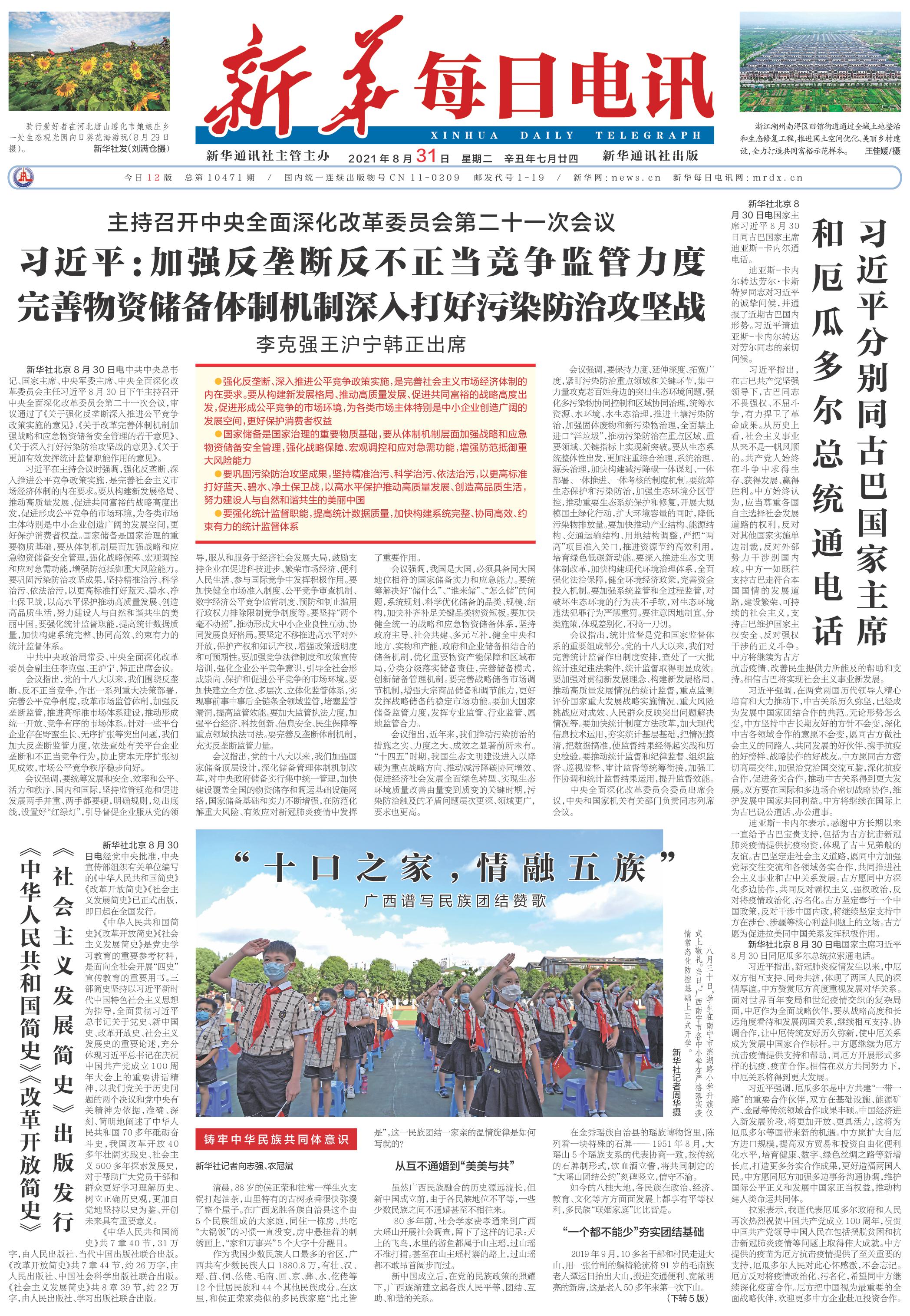 | ( 2021-08-31 ) 稿件来源:新华每日电讯 要 闻 |